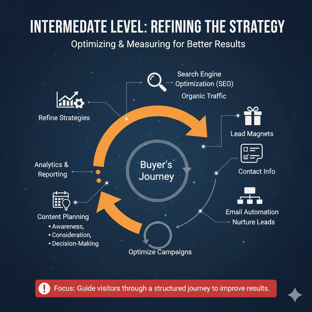 Once the basics are in place, intermediate inbound marketers focus on enhancing engagement and tracking results. Key strategies include: