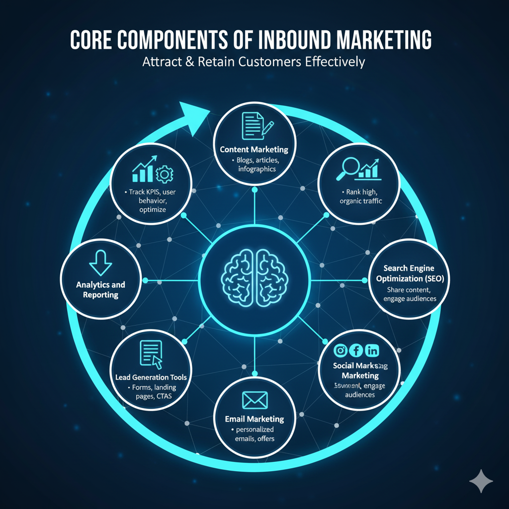 Inbound marketing relies on several key elements to attract and retain customers effectively: