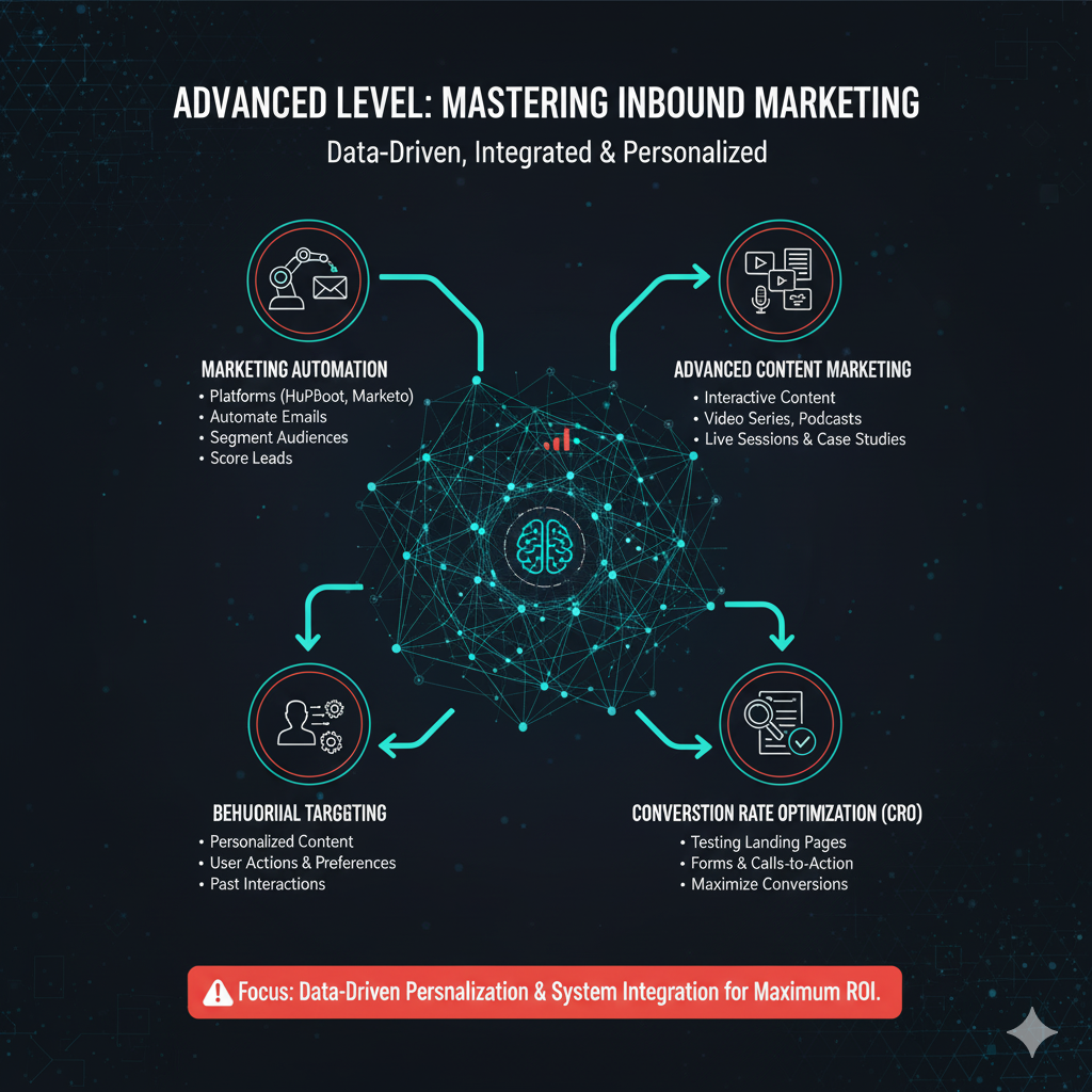 At an advanced level, inbound marketing becomes a data-driven, integrated system that combines multiple channels and tools to deliver highly personalized experiences. Techniques include: