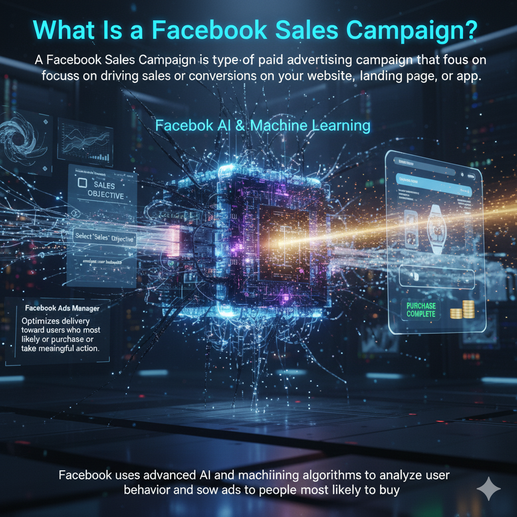 A Facebook Sales Campaign is a type of paid advertising campaign that focuses on driving sales or conversions on your website, landing page, or app. Using Facebook Ads Manager, advertisers can select the “Sales” objective — which optimizes delivery toward users who are most likely to purchase or take meaningful action.
