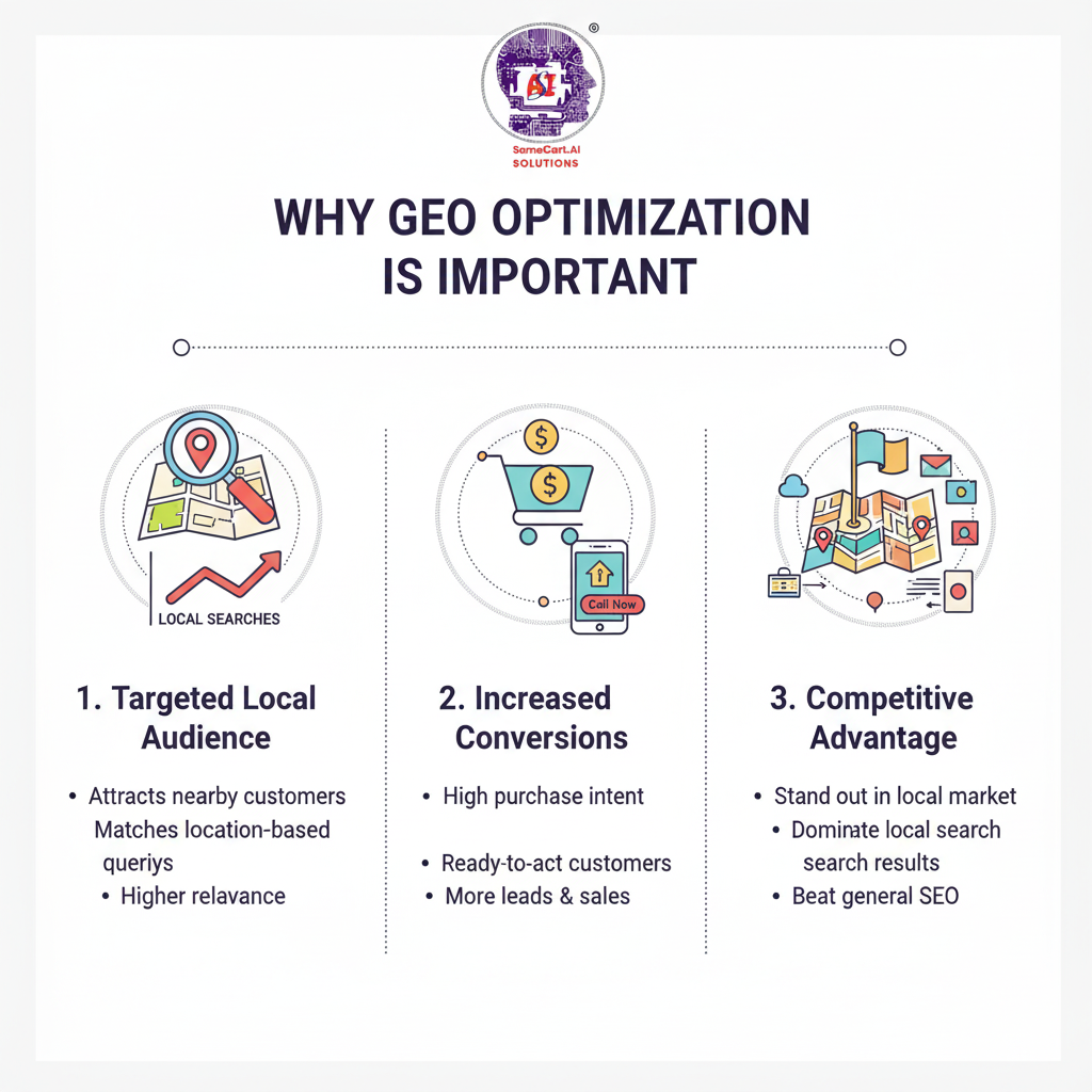 GEO optimization is essential for businesses that want to reach local audiences effectively. By implementing local SEO strategies, optimizing your Google Business Profile, creating location-specific content, and leveraging customer reviews, you can improve visibility, attract high-intent local customers, and grow your business.As Samecart emphasizes, businesses should focus not just on global SEO but also on targeted GEO strategies to connect with their local audience. Investing in GEO optimization ensures that your business is found by the right people at the right time, boosting both visibility and conversions.