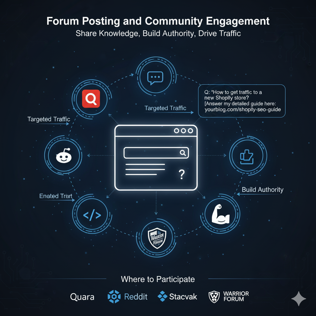 You answer a Quora question How to get traffic to a new Shopify store and add your link