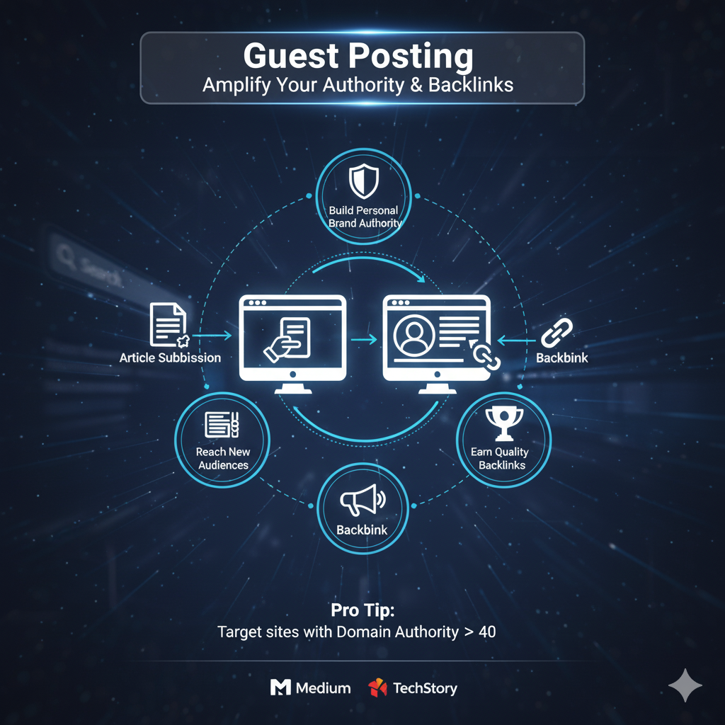 You submit a guest post titled The Future of Digital Marketing in 2025 on Medium or TechStory and include a backlink to your portfolio website.